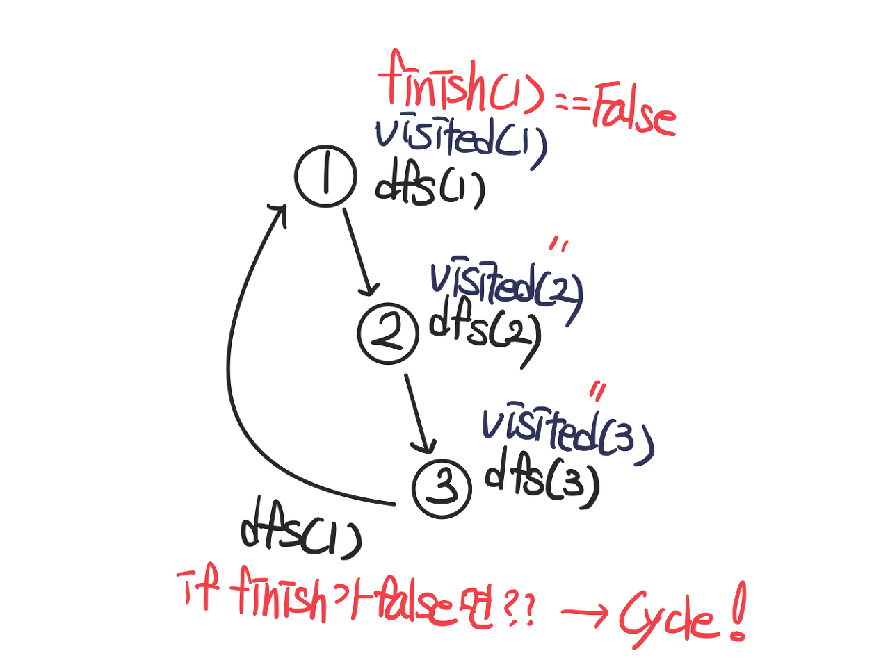 # 방문했는데 안끝났을 경우, 역방향 간선 확인
